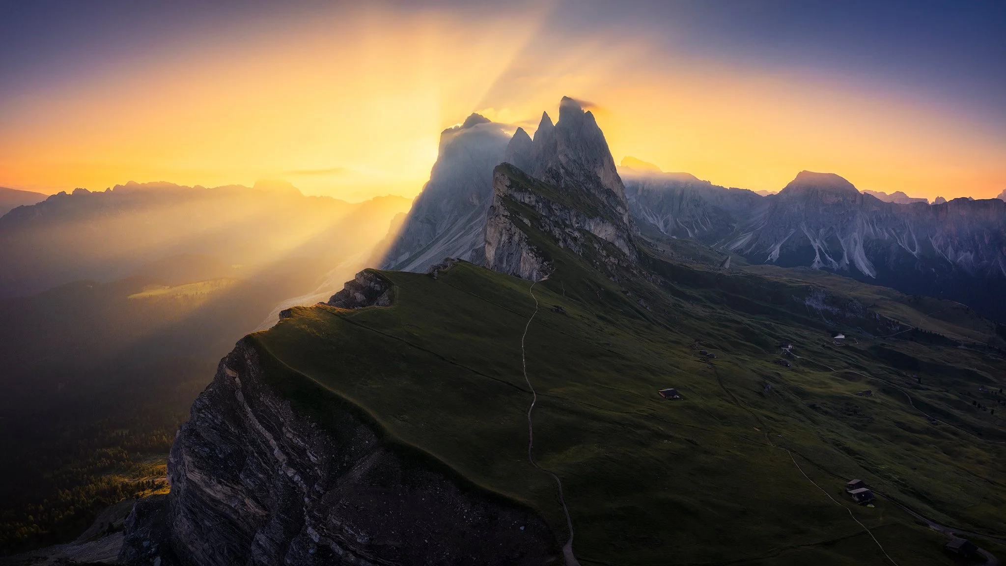The sunrise in Seceda is a breathtaking spectacle that captivates photographers and nature enthusiasts alike. As the first light breaks over the horizon, the dramatic peaks of the Dolomites are illuminated, casting a warm glow that contrasts beautifully with the cool morning air.