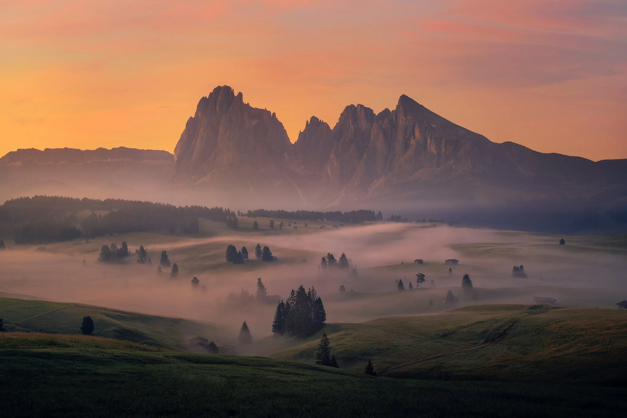 Misty mornings in the Alpe di Siusi create a serene atmosphere that captivates the senses.