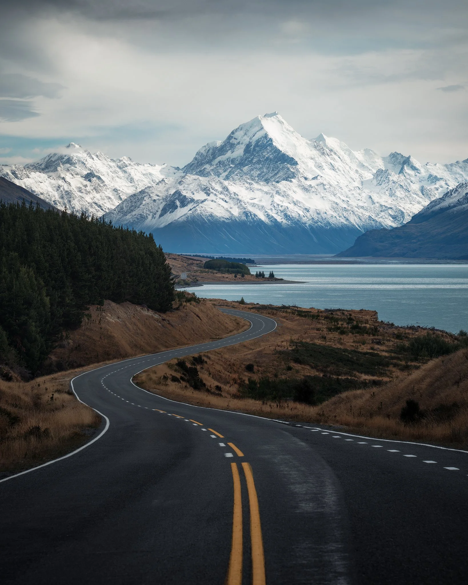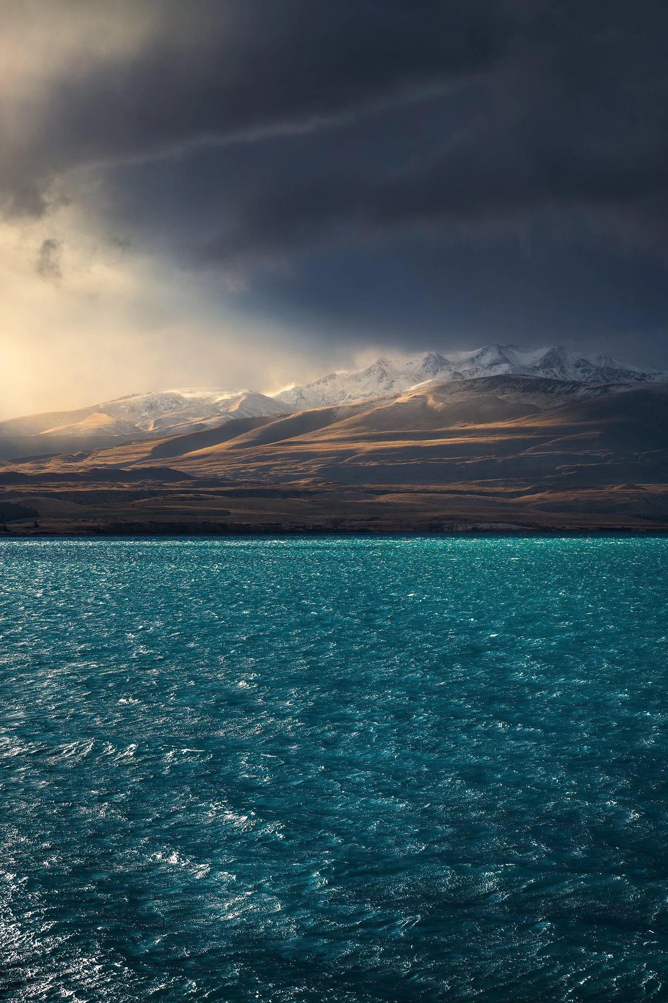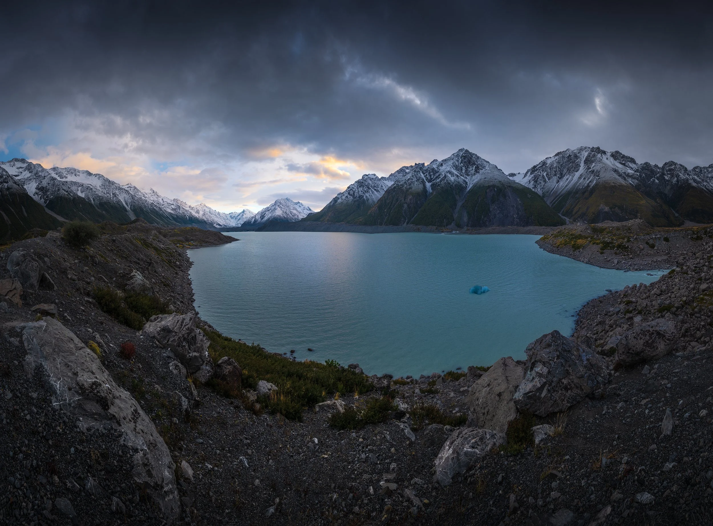 Striking sunset along the shores of Lake Tekapo in New Zealand