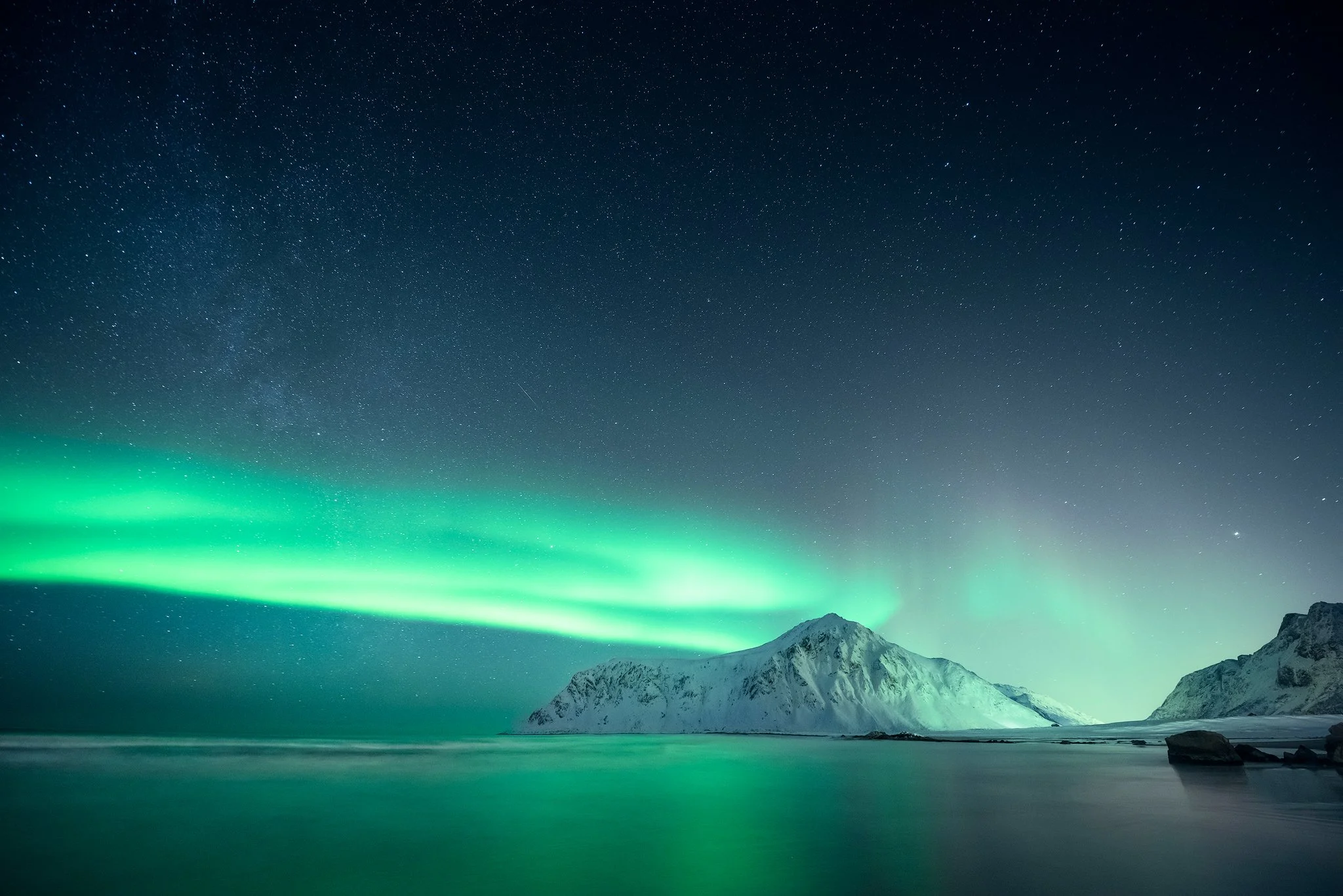 The Arctic Fjords of Norway, particularly in Senja during winter, offer a breathtaking contrast of rugged terrain and serene landscapes.